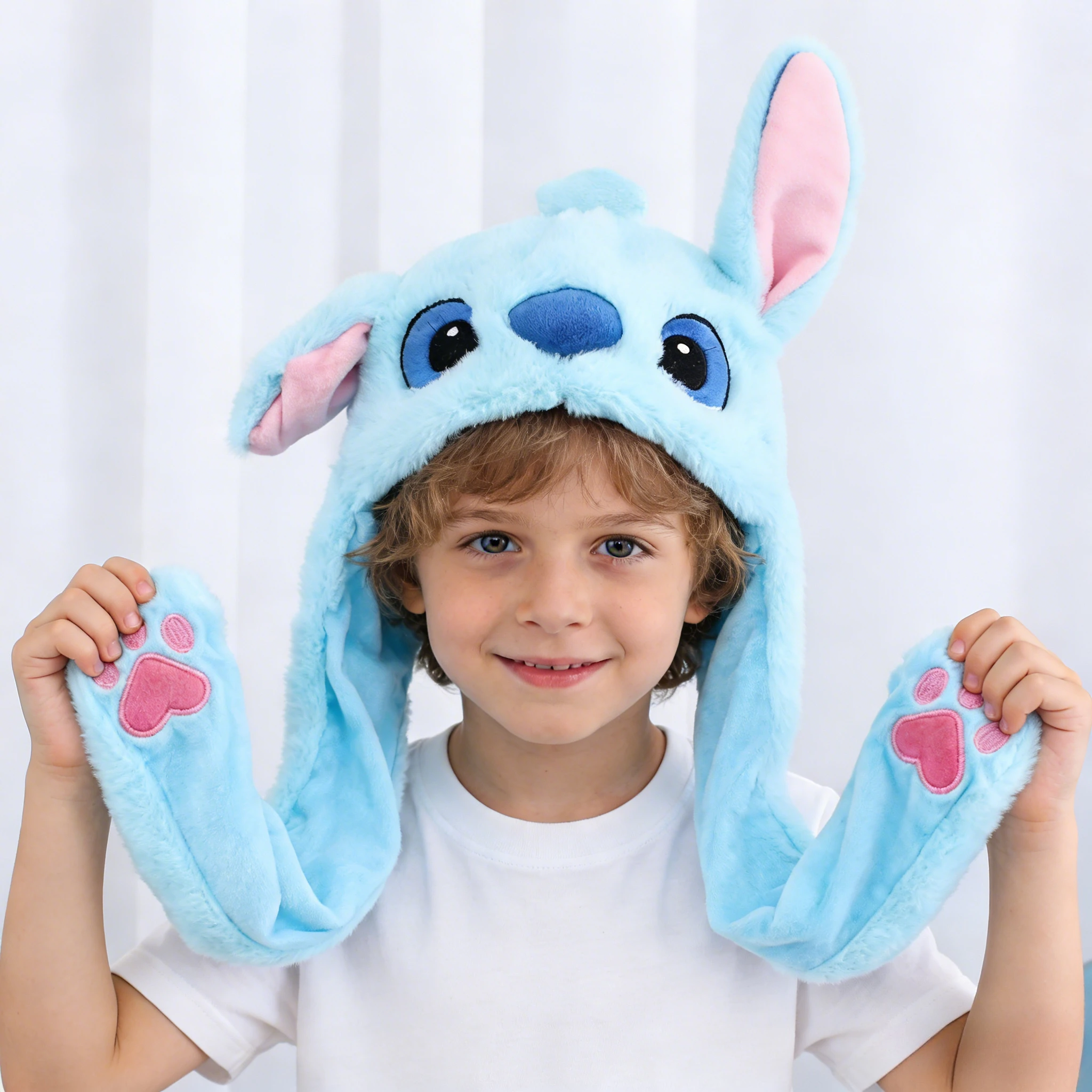 Anime Stitch Leuchtender Plüsch-Ohrenbewegungshut Lustiger Leuchtender Hasenhut mit Beweglichen Ohren Cosplay Weihnachtspartyhut
