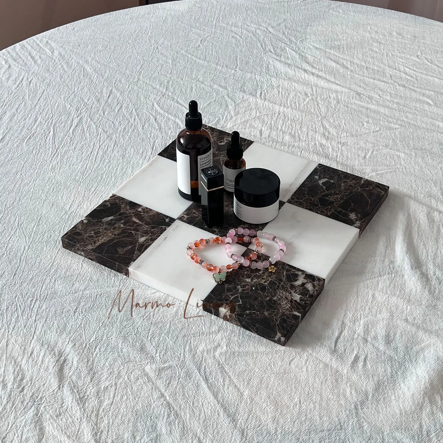 Nordisches Luxus-Marmor-Markttablett Hotel-Marmor-Ornamente Wohnzimmer-Schmuckbox Aufbewahrungsplatte Dekoration