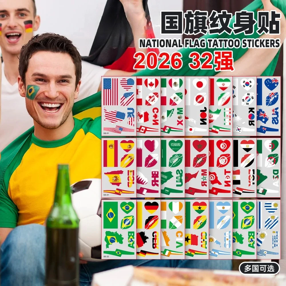 2026 Fußball Temporäre Tattoos Flaggen-Designs Wasserfeste Gesichtsaufkleber für Sportveranstaltungen Fan-Anfeuerung Party-Mitbringsel