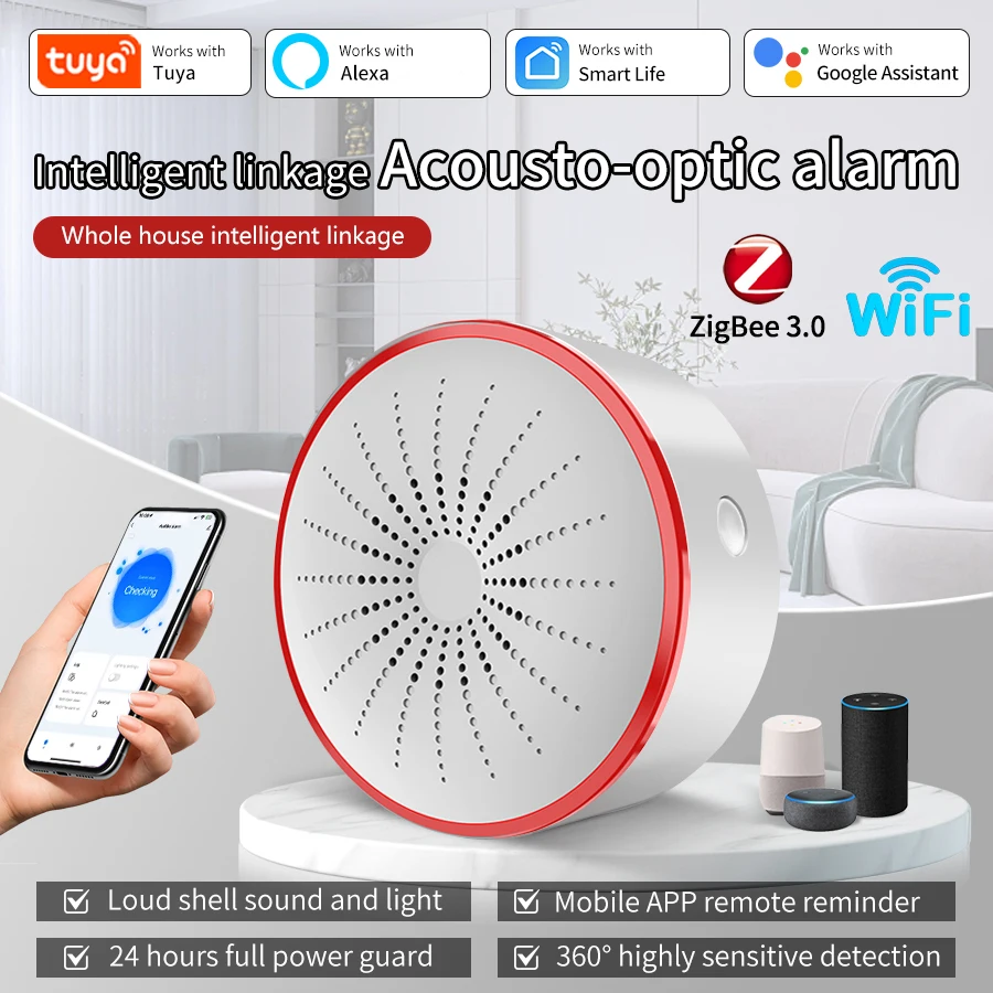 Tuya ZigBee Smart Sirene 85DB WiFi Alarm Sound Licht Sensor Detektor Home Security Alarm App Steuerung Funktioniert Mit Alexa Google Hause