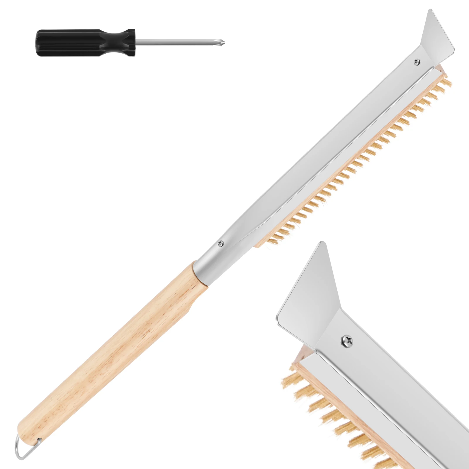 Long Handle Pizza Oven Brush Grill Tool Cleaning Brush with Stainless Steel Scraper Kitchen Pizza Oven Brush Baking Accessories