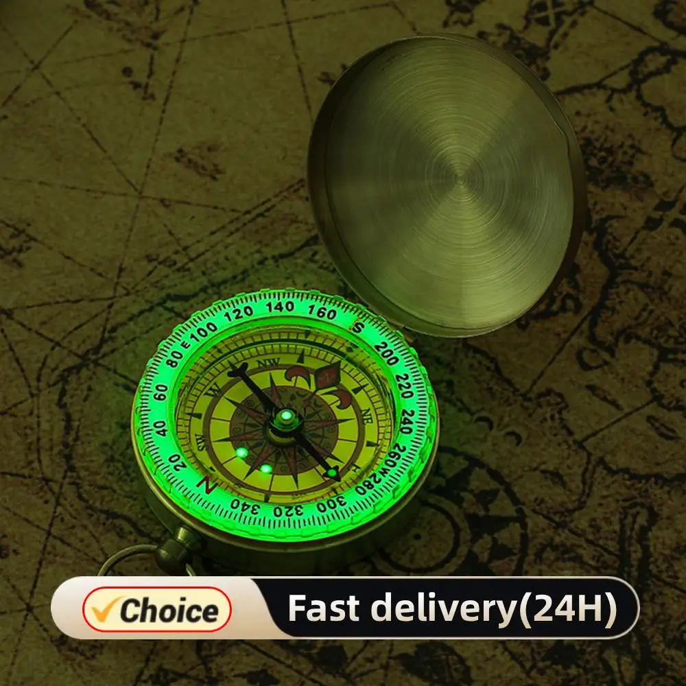 Brass Outdoor Compass - Gold Copper Portable Pocket Compass with Glow-in-the-Dark Display for Camping & Hiking Navigation
