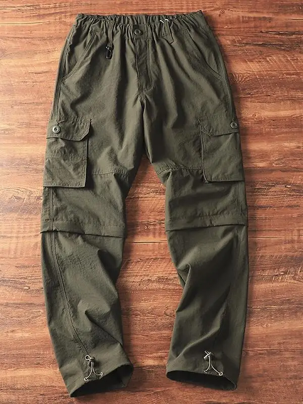 Outdoor Work Trousers Men's Summer Thin Qui Dry Loose Hiking Pants Women's Elastic Detachable Windproof Waterproof Pants