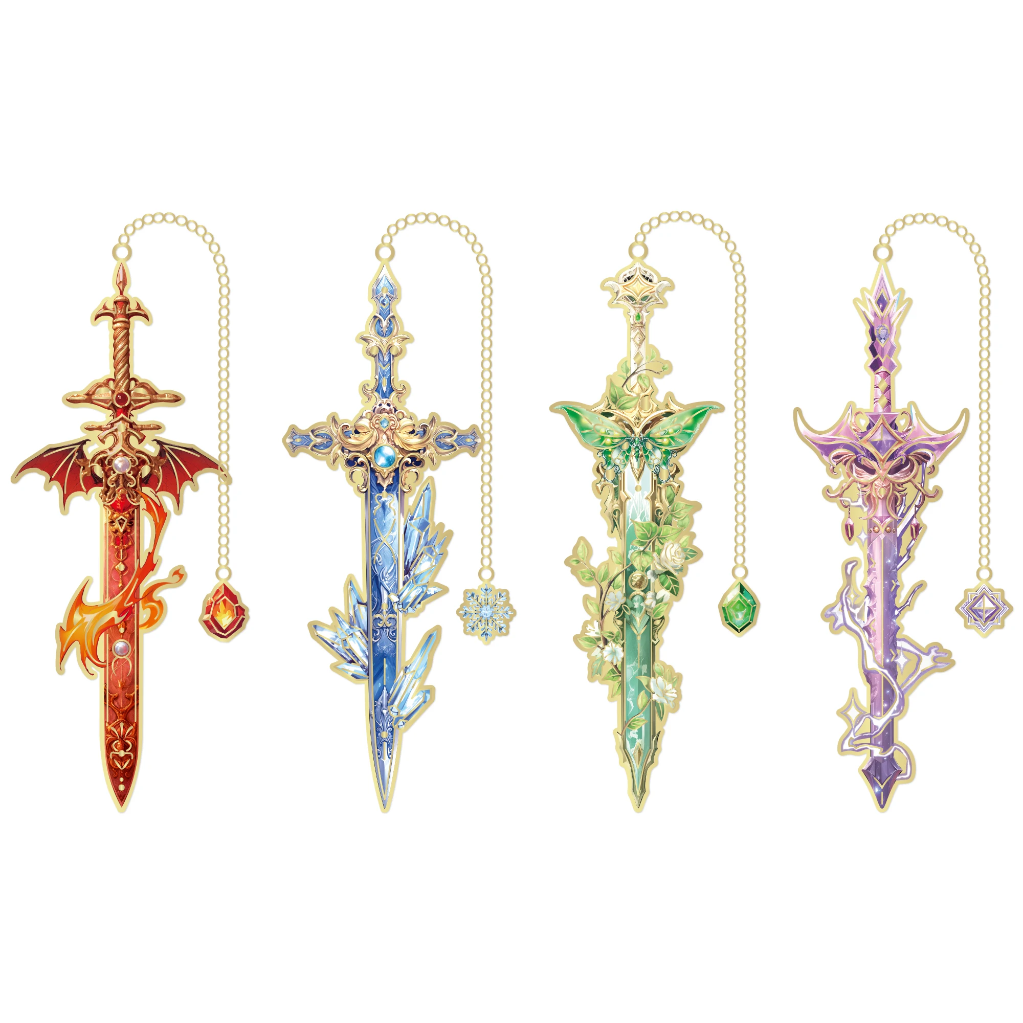 4pcs Fantasy Sword Bookmarks for Books, Journals, Planners - Cool Metal Book Markers for Reading Women & Men, Unique Book Marks