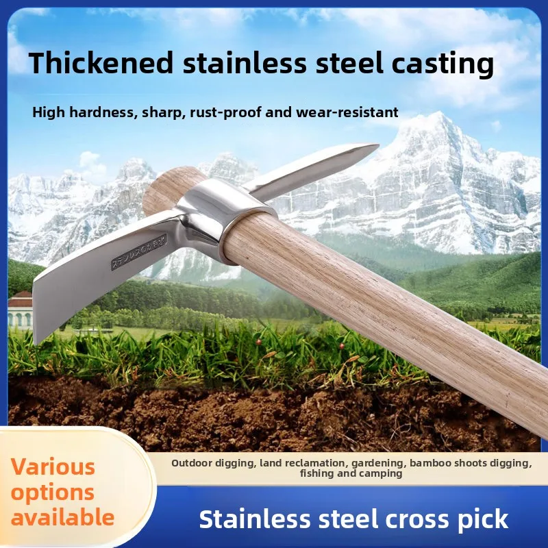 Stainless Steel Pure Steel Pickaxe Tree Root Hoe Portable Bamboo Shoots Pickaxe Agricultural Ice Pickaxe Tool
