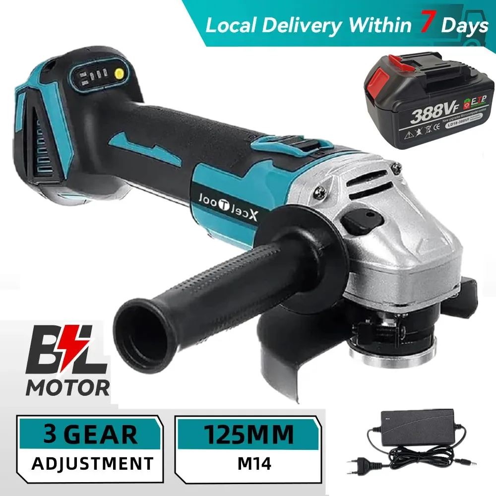 125MM Brushless Electric Angle Grinder 3 Speeds Cordless Grinder Cutting Machine Woodworking Power Tool for Makita 18v Battery