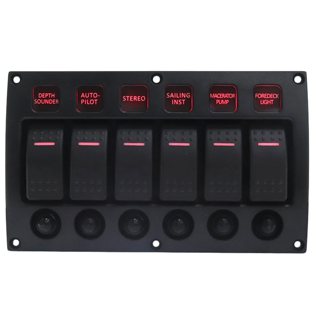6 Gang LED Rocker Switch Panel with Circuit Breakers for RV Car Marine Boat