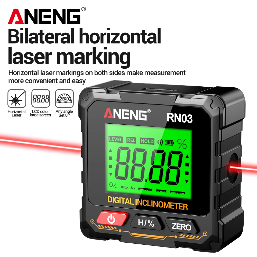 Magnetic Digital Angle Finder ANENG RN03 Laser Inclinometer Rechargeable USB Protractor Level Angle Ruler Angle Measurement
