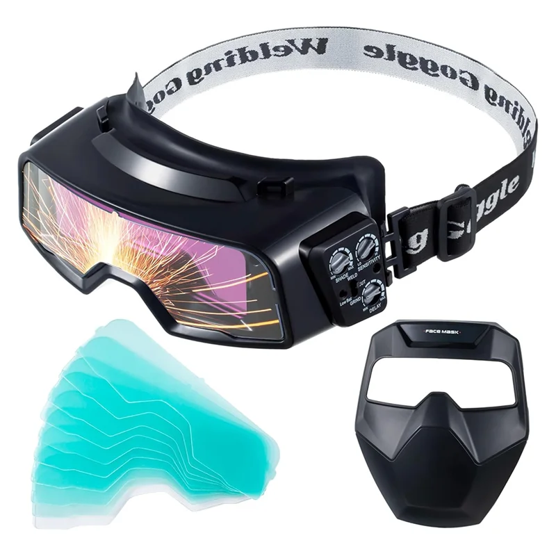 VELIF-Auto Darkening Welding Goggles, Wide Rang Shade 4/5-9/9-13, Welding Glasses With Welder Mask And 10 Replacement Lenses
