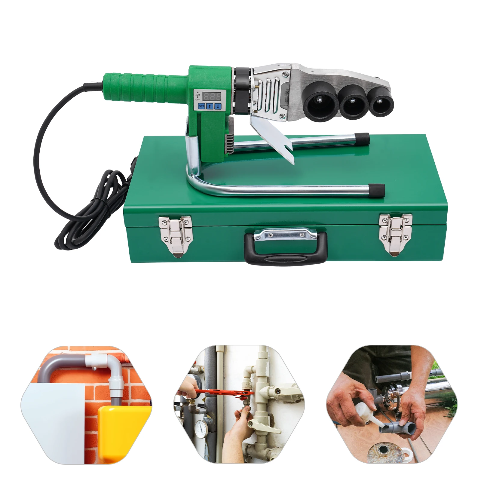 PPR Pipe Welding Machine, 1500W Water Pipe Heating Tool with LED Display, 3 Die Heads Precise Temp Control for Plastic Welding