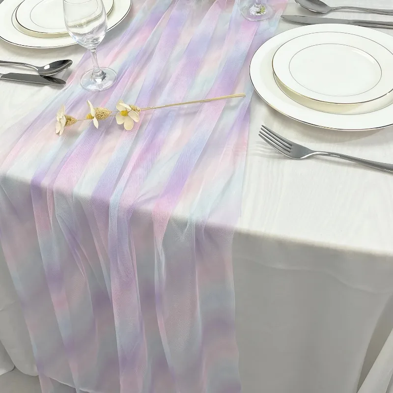 Rainbow Table Runner Soft Tulle Fabric Wedding Transparent Breathable Clothing Skirt Doll Clothes Handmade DIY Home Decor