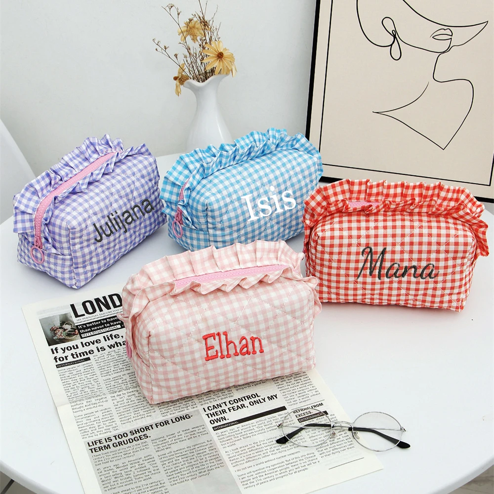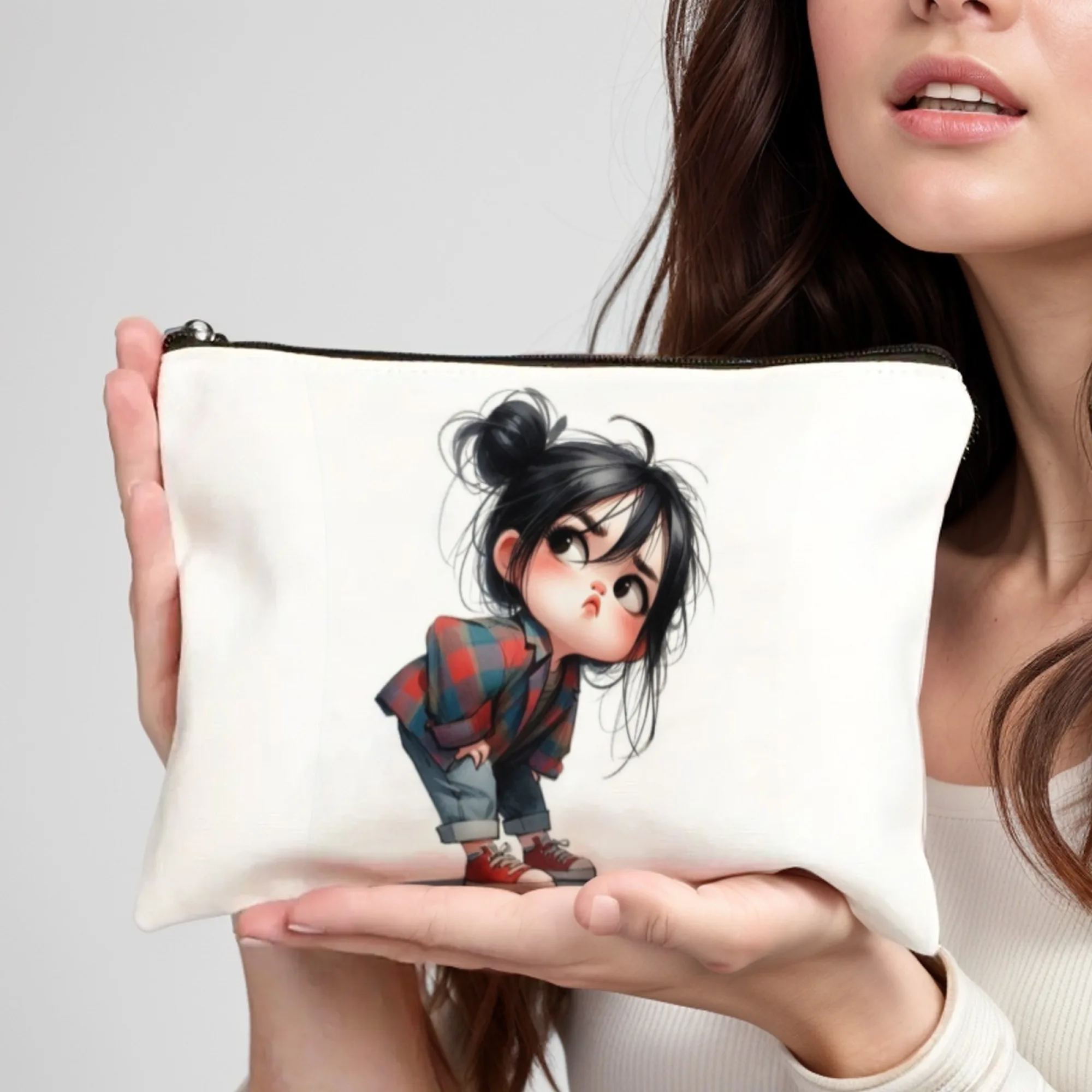 Girl in checked shirt Durable Zippered Makeup Bag for Travel Cosmetic Pouch with Pockets Women Toiletry Organizer Christmas