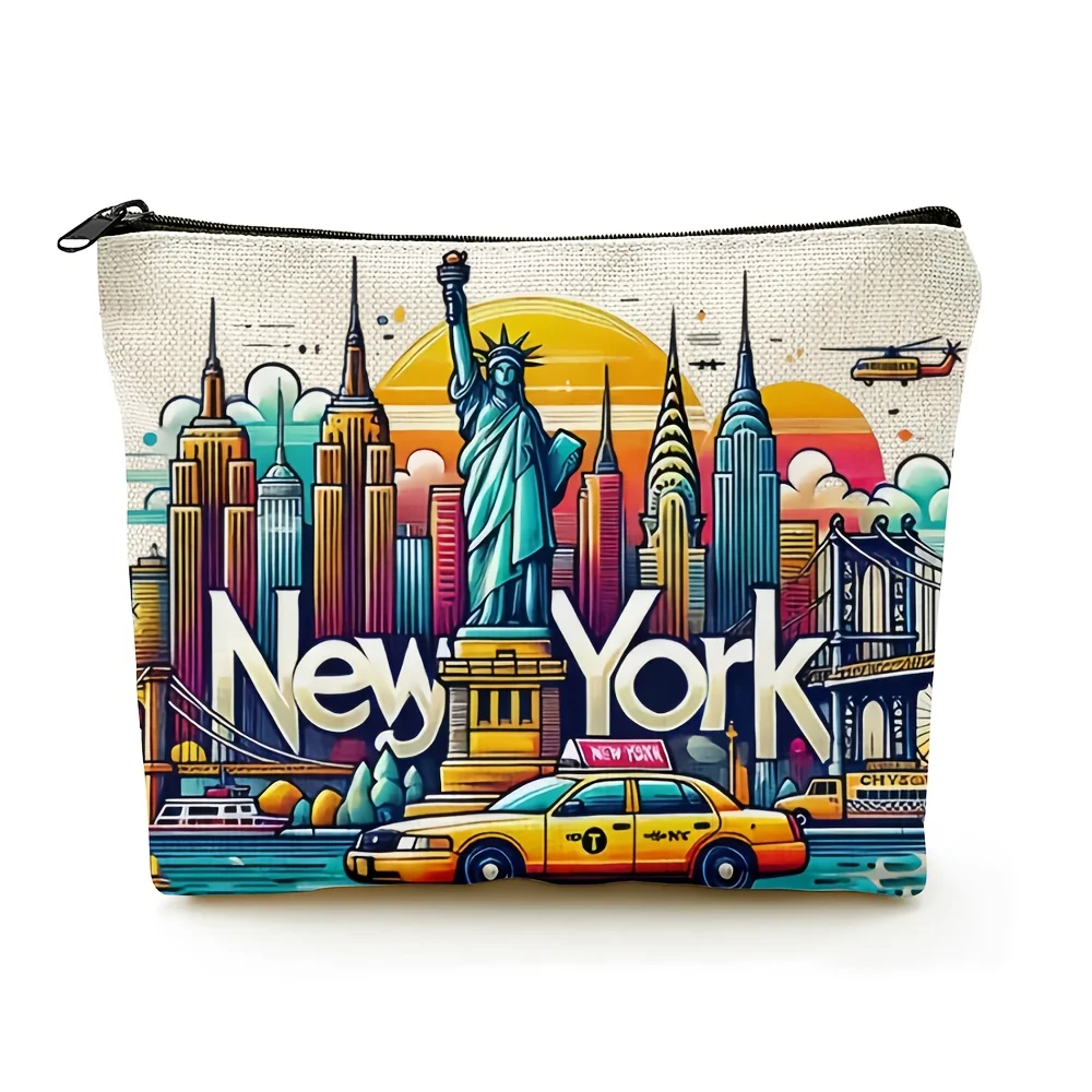 New York City Design Makeup Bag with Iconic Landmarks Compact Travel Cosmetic Pouch for Women Gift for Christmas Storage Bag