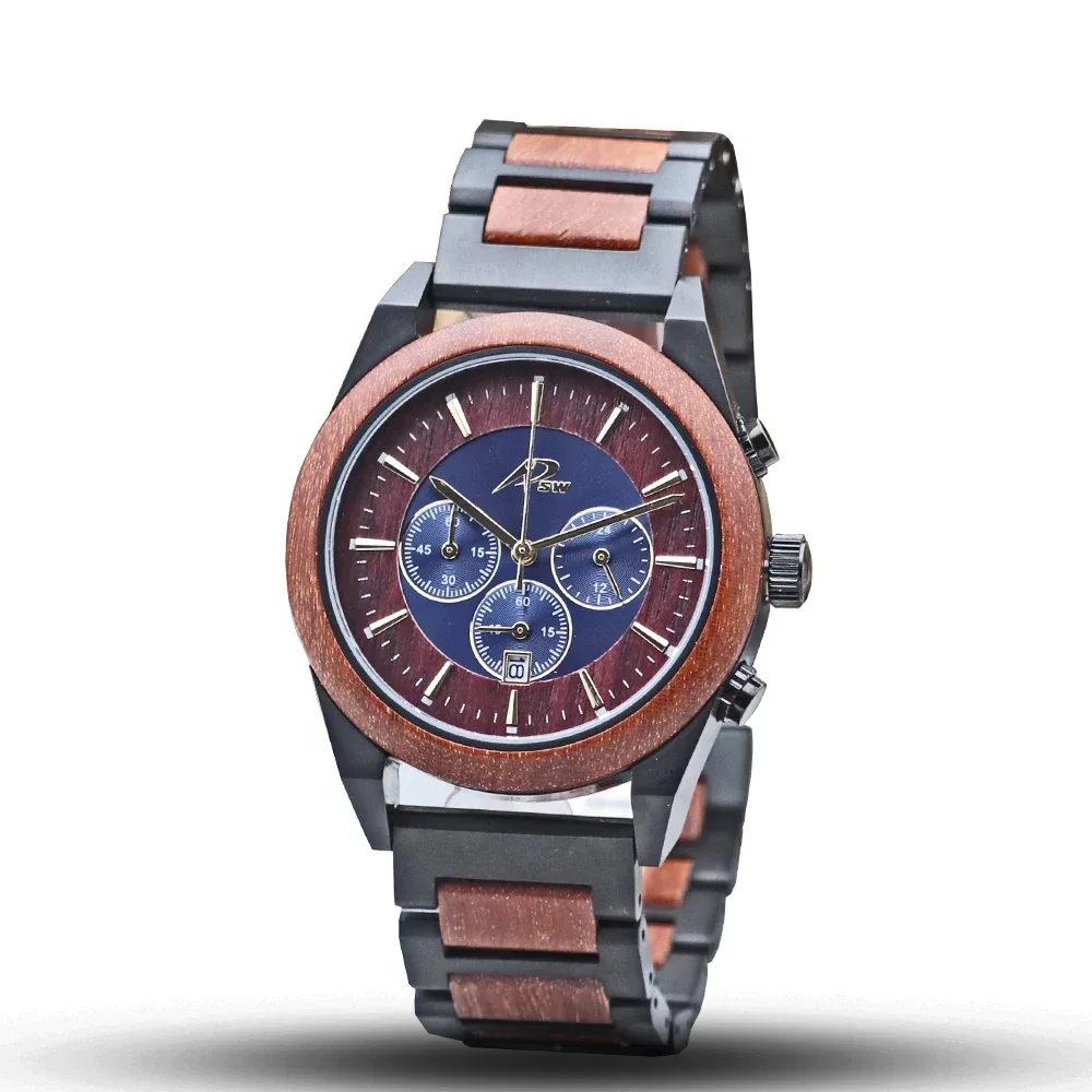 ## Luxury Chronograph Timepieces Men Wooden Watches Logo Custom Watch Steel And Wood Watch