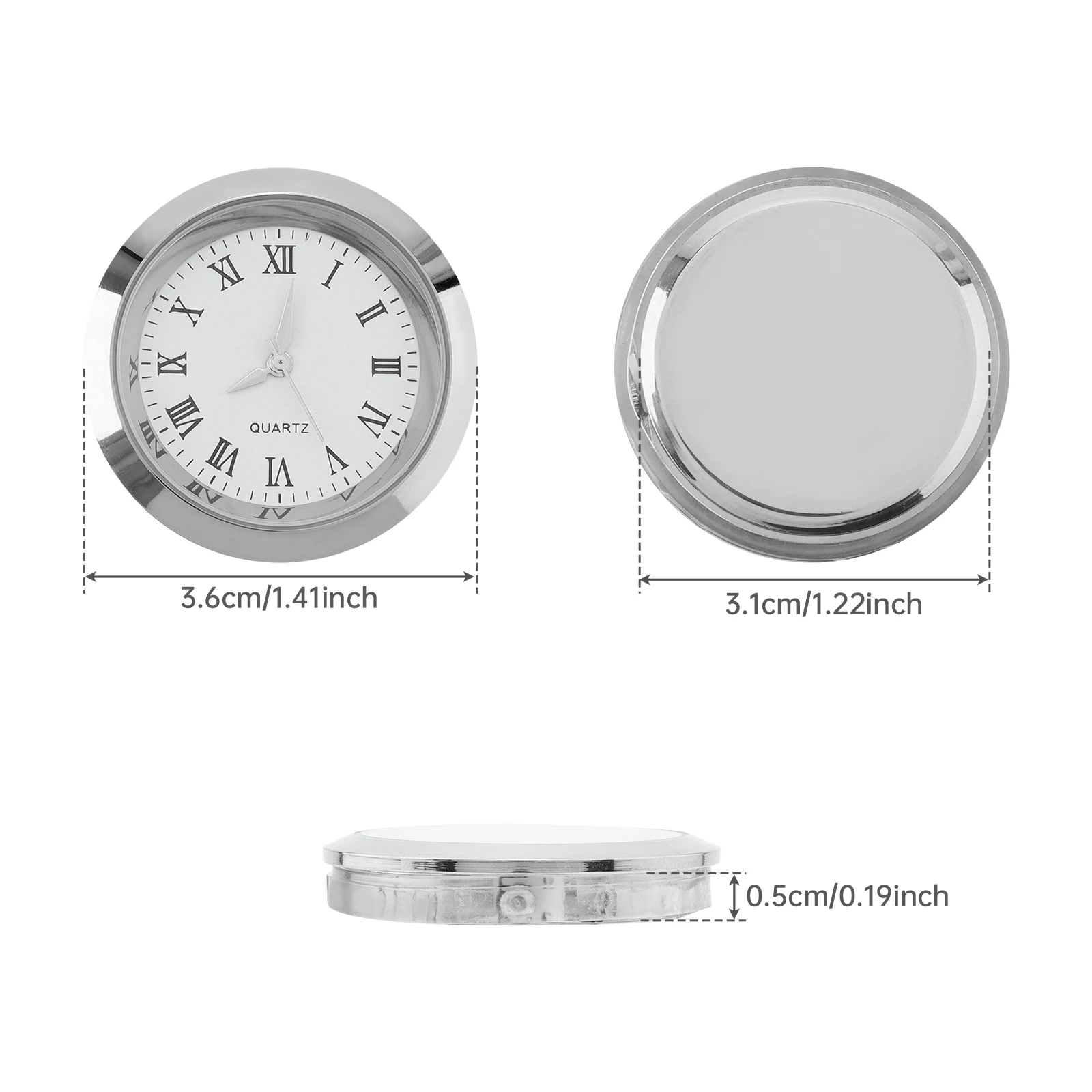 1-1/2 inch 37mm Quartz Movement Round Mini Clock Insert for 35 mm Diameter Hole with White Face,Roman Numerals,Silver Tone Bezel