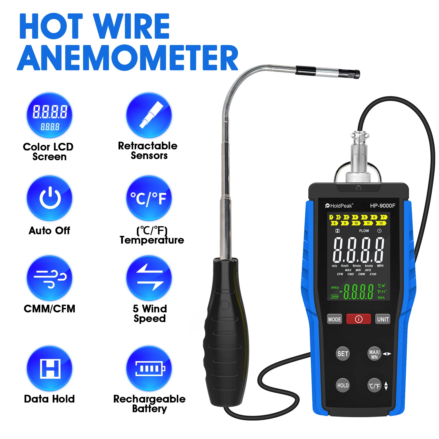 GM816 Digital Anemometer Wind Speed Mini Air Velocity Airflow Temperature with LCD Backlight Wind Speed Meter