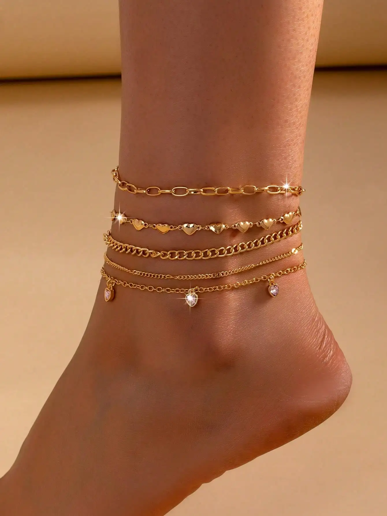 Set of Five Bohemian Beach Vacation Sexy Love-Themed Women's Anklet Jewelry