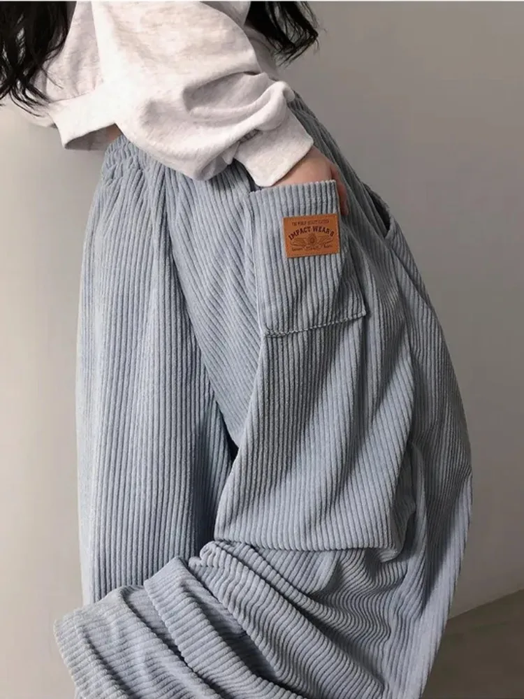 Women's Corduroy Wide Leg Pants Autumn Winter High Waist Casual Trousers Ba Patch Print Loose Fit Long Trousers
