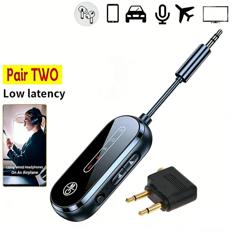 Bluetooth 5.4 Transmitter Receiver 2 in 1 Low Latency Dual Connection 3.5mm AUX Adapter for Car TV Airplane Headphones