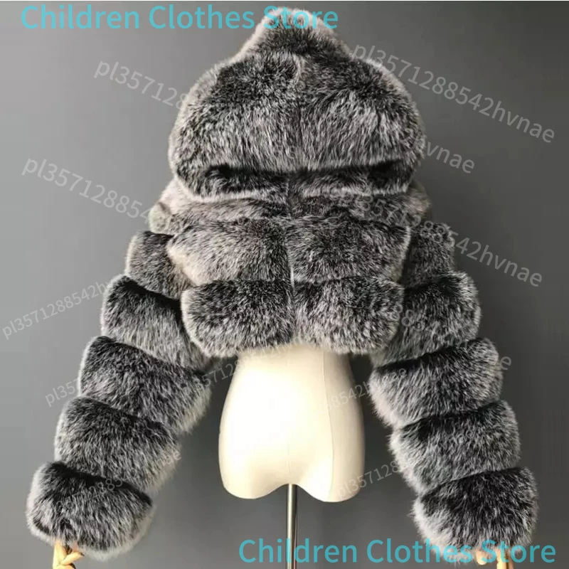 High Quality Furry Cropped Faux Fur Coats and Jackets Women Fluffy Top Coat with Hooded Winter Fur Jacket Manteau Femme MOM Gift