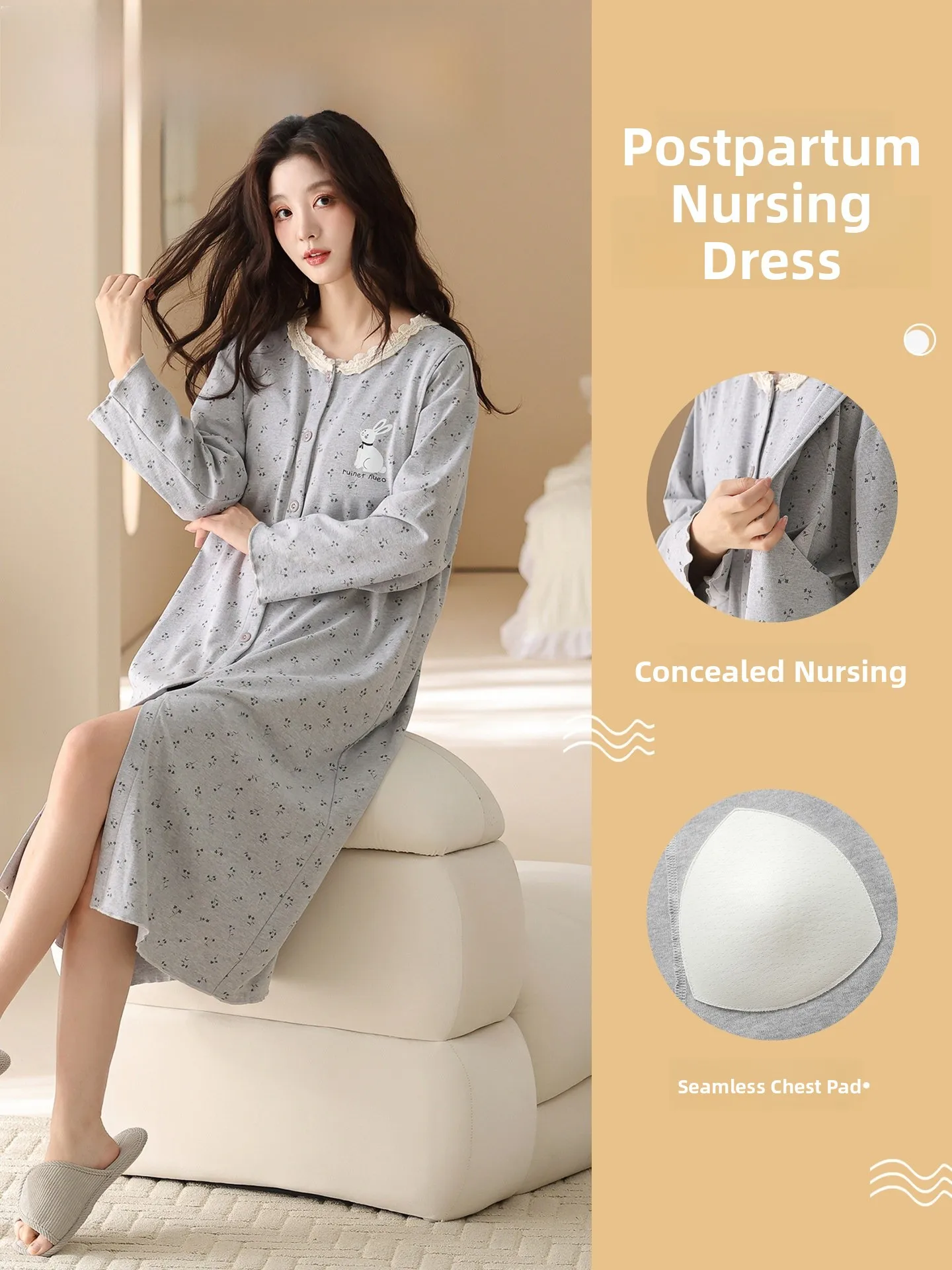 Materni Spwear with Chest Pad Postpartum Thin Four Seasons Home Clothes Nursing Mothers Nightgown Spring Summer Autumn W...