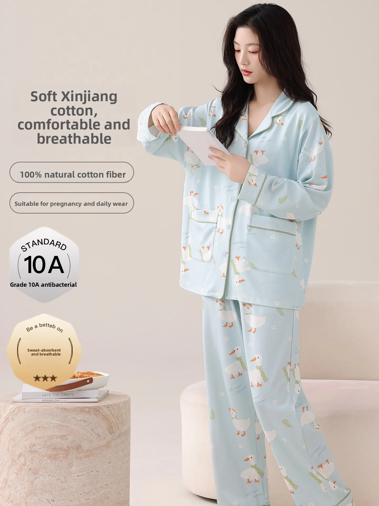 High Quali Cotton Materni Clothing with Chest Pad for Nursing Women Suitable for Autumn Winter Home Wear Outwear