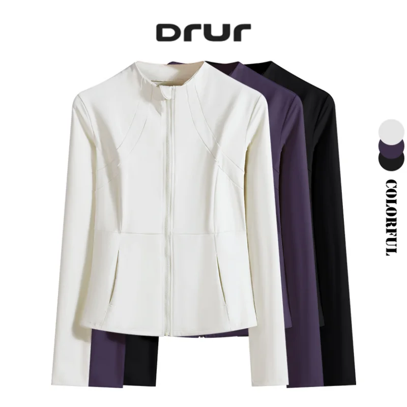 DRUR Slim Fit Running Jacket Women Breathable Long Sleeve Athletic Workout Top Zip Up Yoga Shirt With Pocket Autumn Sportswear
