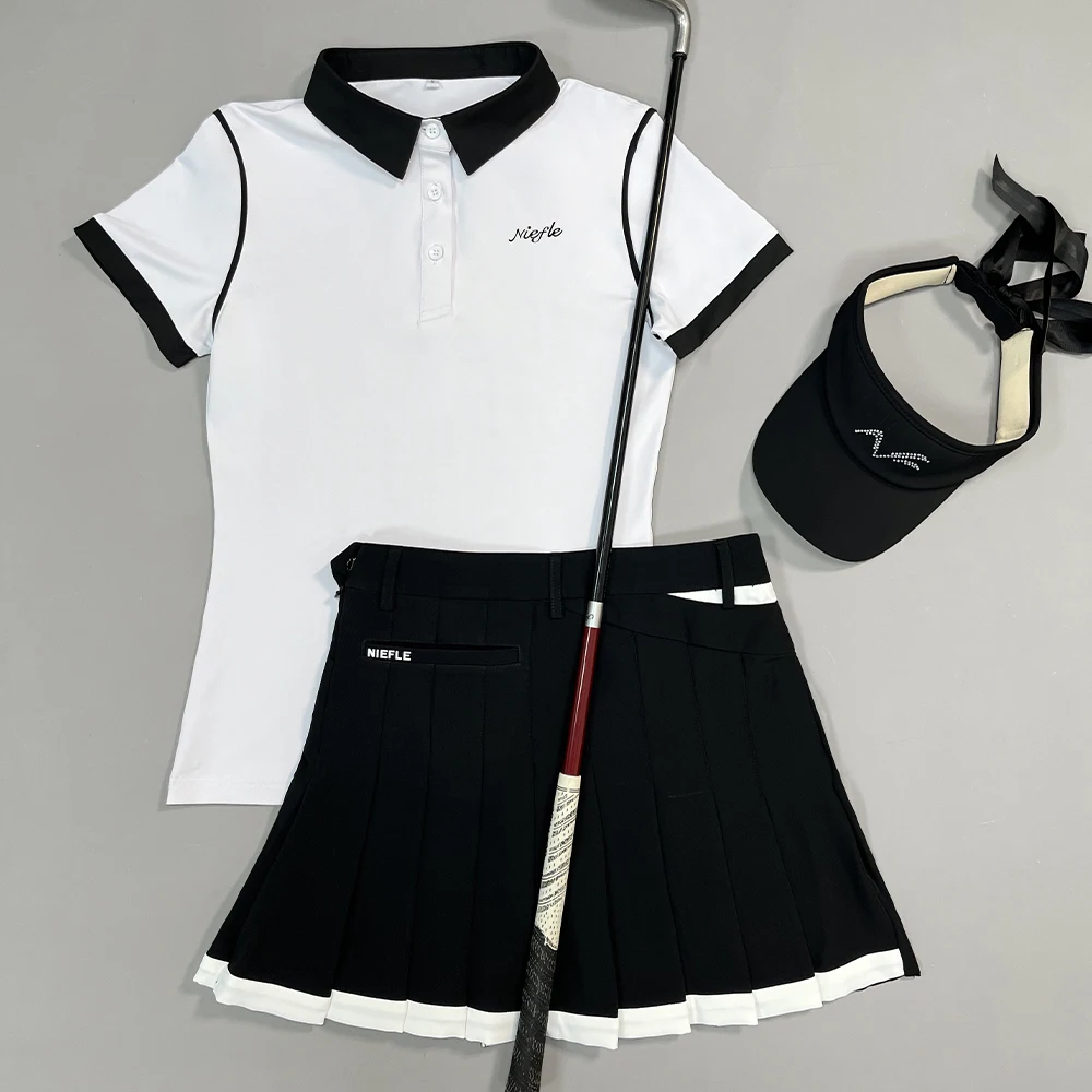 Golf Women's Summer Short-sleeved Top Color Contrast Slim-fit Quick-drying Polo Shirt High-end Outdoor Leisure Sports Suit