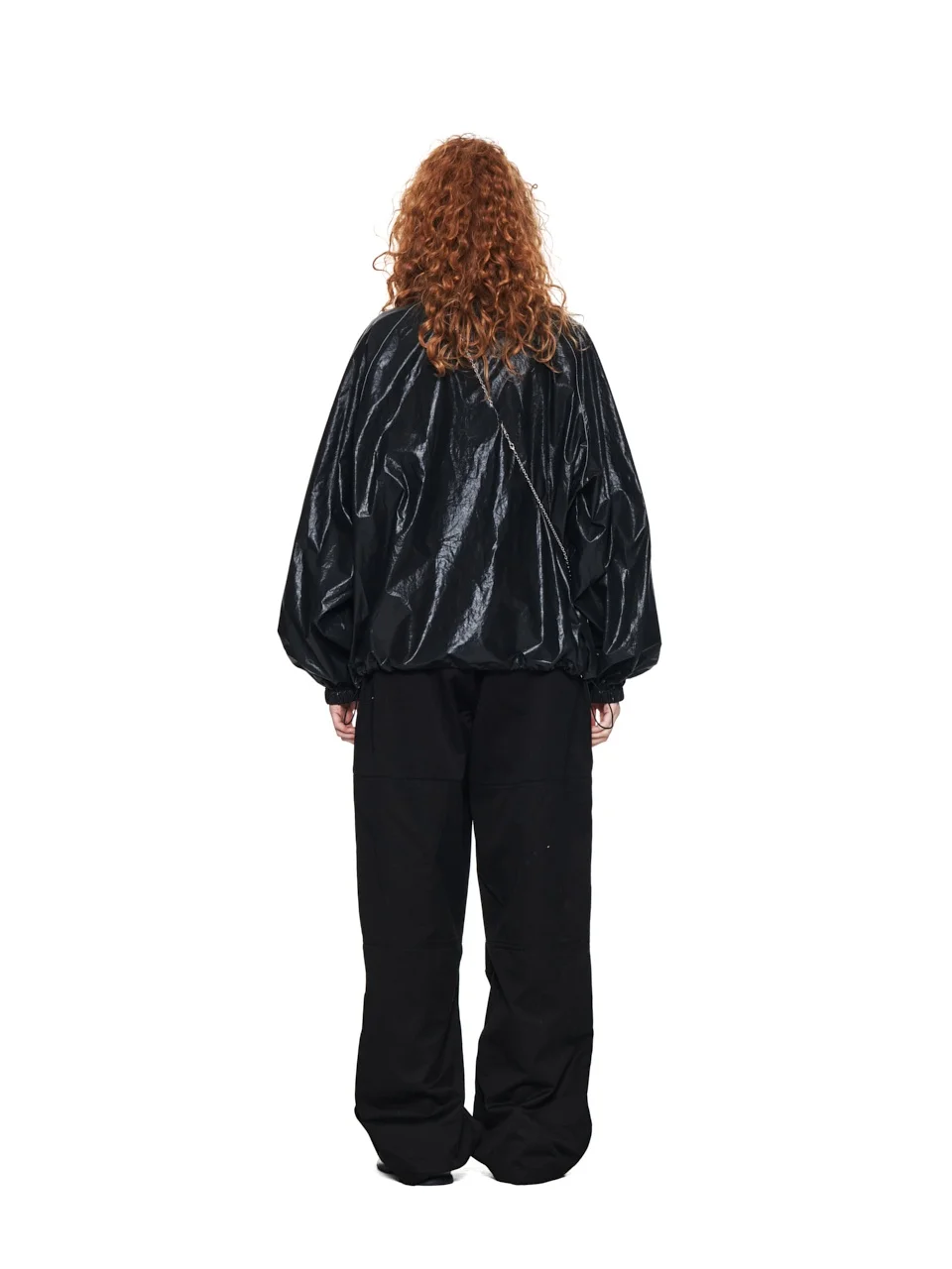 High Street Design Matin Ba Letter Logo Loose Bla Zipper Stand Collar Jaet Women's Casual Sle Coat MT Brand