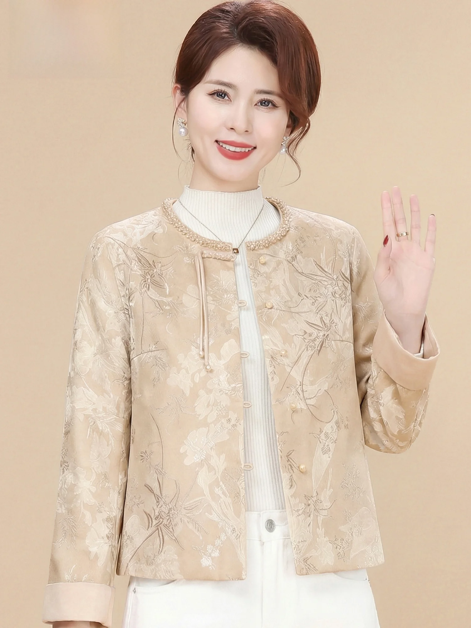 Ele Small Fraance Sle Jaet for Middle-Aged And ly Women Faionable Breathable Lightweight Polyester Springwear