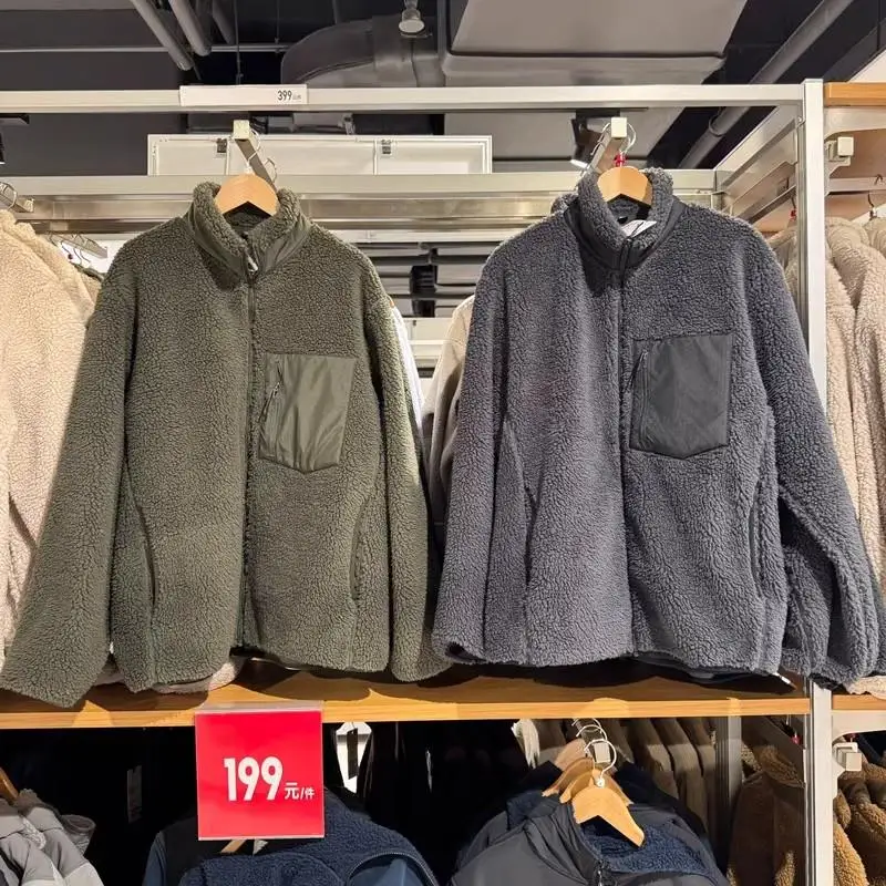 Classic Style Warm Fleece Lined Jacket Coat for Men And Women Long Sleeve Splicing Sweatshirt Jacket Winter Outerwear 460331