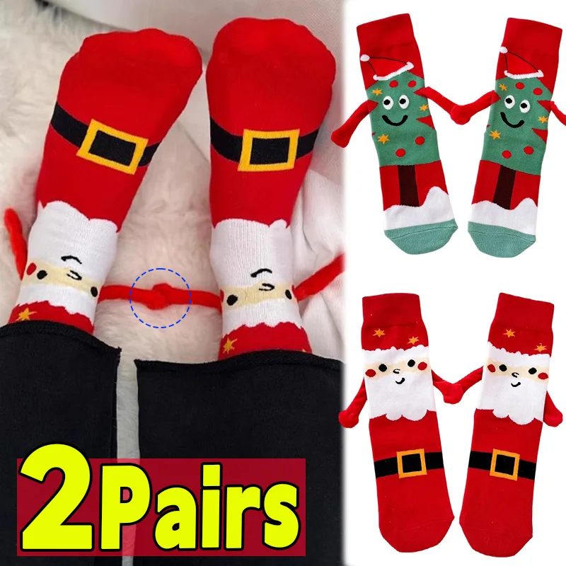 2026 New Christmas Magnetic Holding Hands Adhesive Socks for Women Men Winter Warm Long Sock Hosiery Couple Socks Lover Gifts