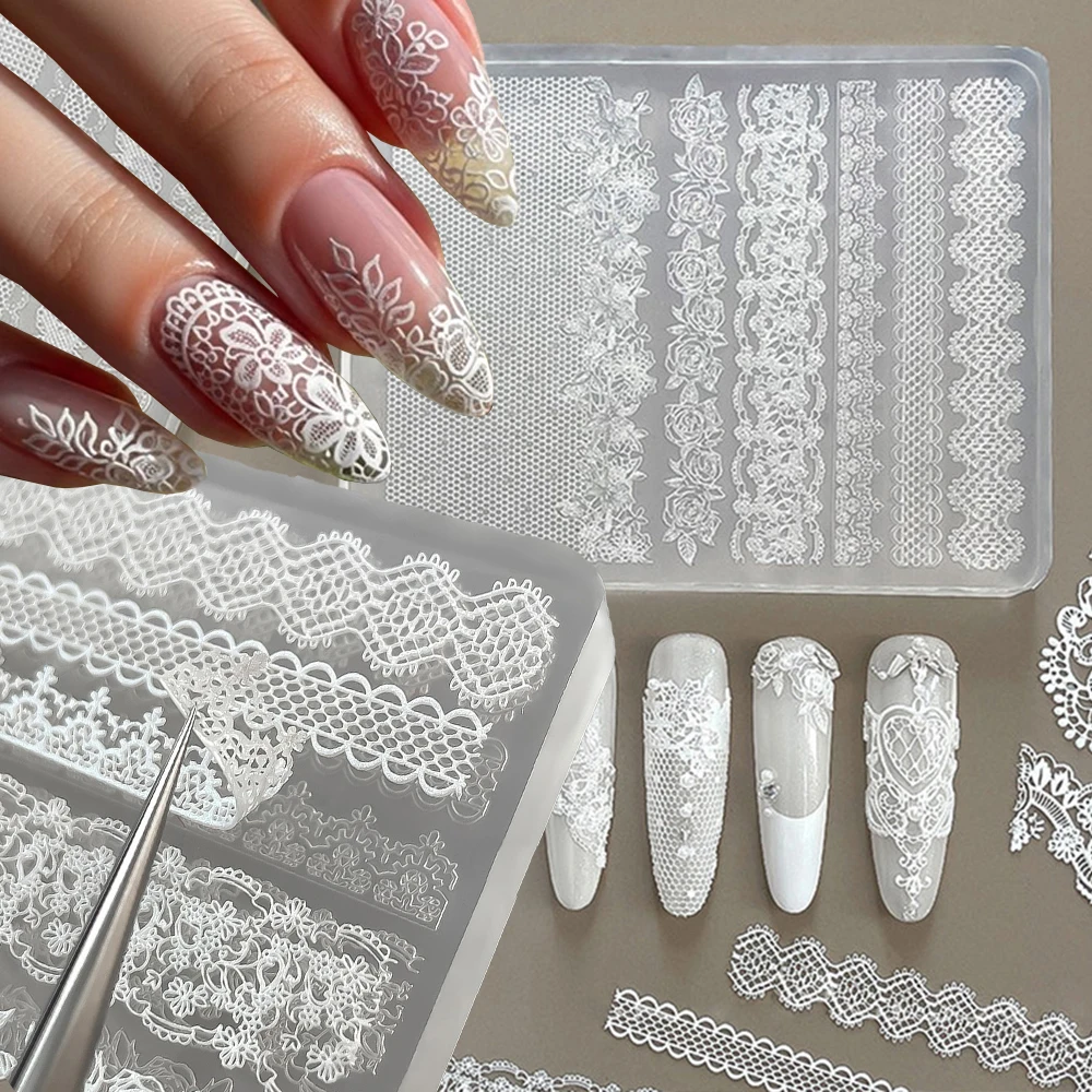 5D Lace Silicone Nail Art Molds Retro Rose Flower Lace Ribbon Design Nail Silicone Template Ultra-thin Sexy Lace Manicure Mold#*
