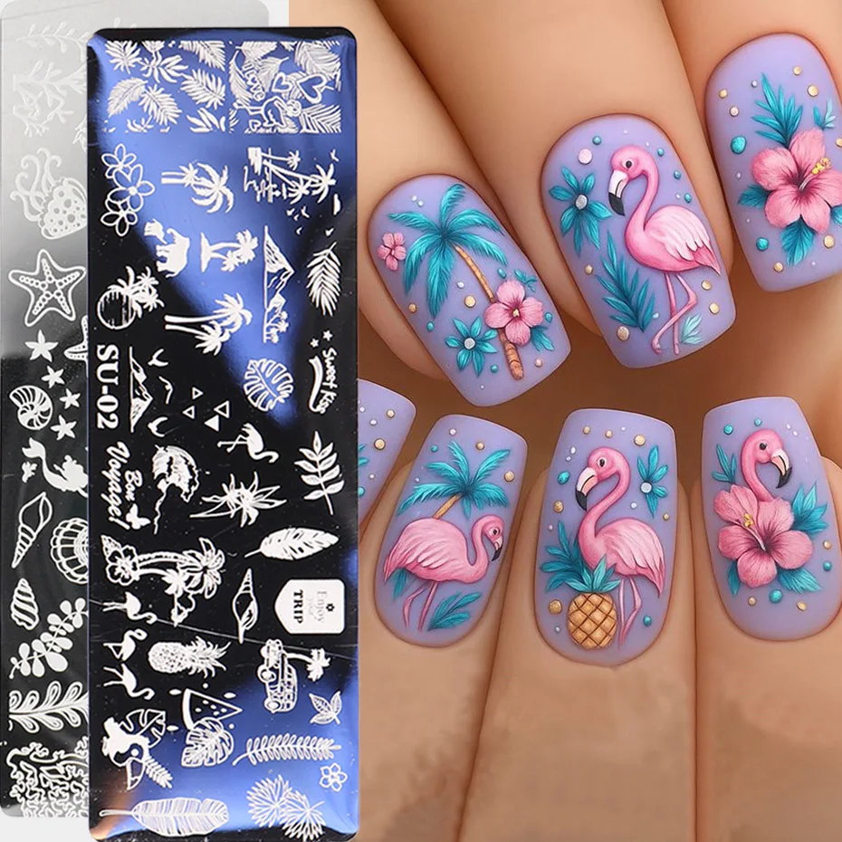 Tropical Banana Leaves Coconut Trees Plants Nail Transfer Templates Summer Ocean Theme Starfish Jellyfish Nail Stamping Plates