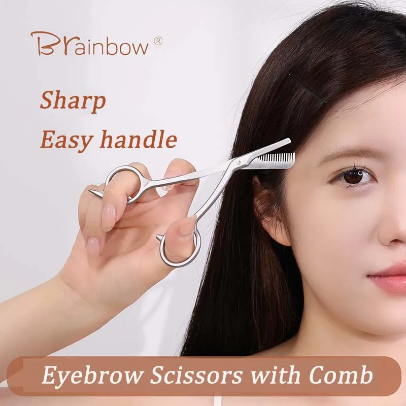 Brainbow Stainless Steel Eyebrow Scissors With Eyebrow Comb High Quality Makeup Eyebrow Trimming Knife Hair Remover Shaver Tool