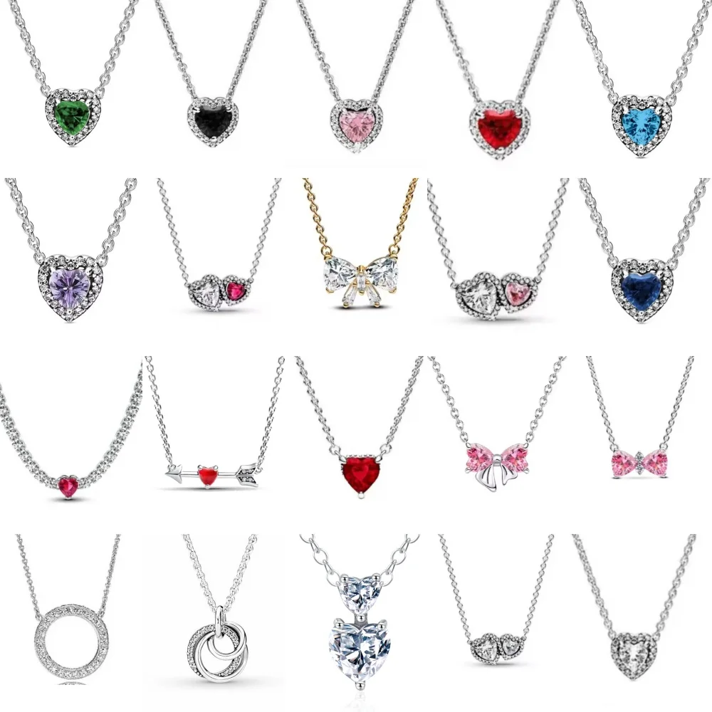 Hot Selling Heart-Shaped 925 Sterling Silver Elevated Red&Pink&Blue&White Heart Necklace Lover's Holiday Gift Jewelry