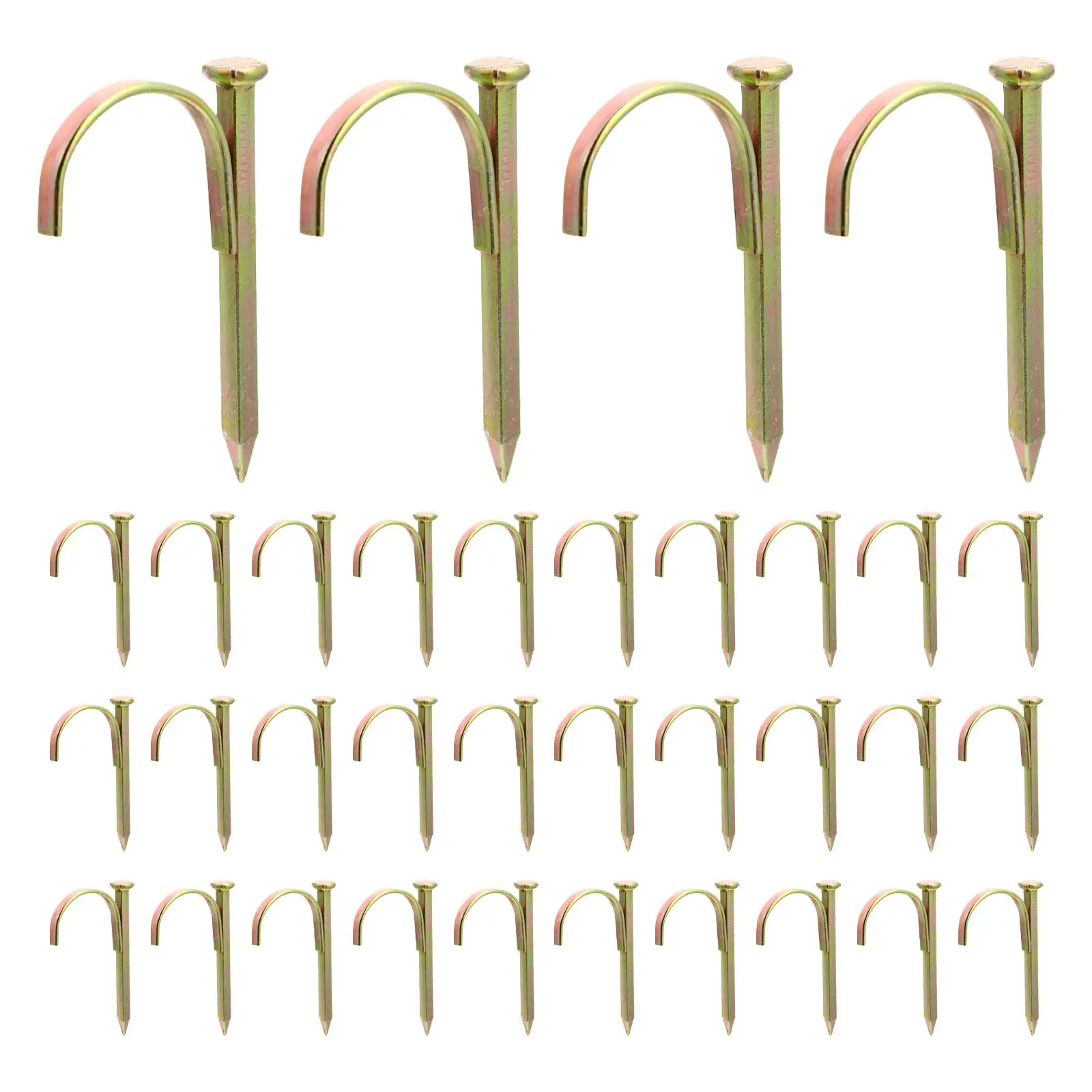 100Pcs Steel Half Clamp Hook Cable Clips Half Clamps with Nails Wire Construction Pipe Support Clip Fasteners Home Improvement