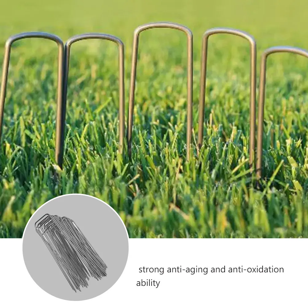 50Pcs U-Shaped Fixing Nails Steel Garden Pile Easy Install Anti-Rust Fixing Turf Tool Weed Fabric Anchor for Garden Lawn Edge