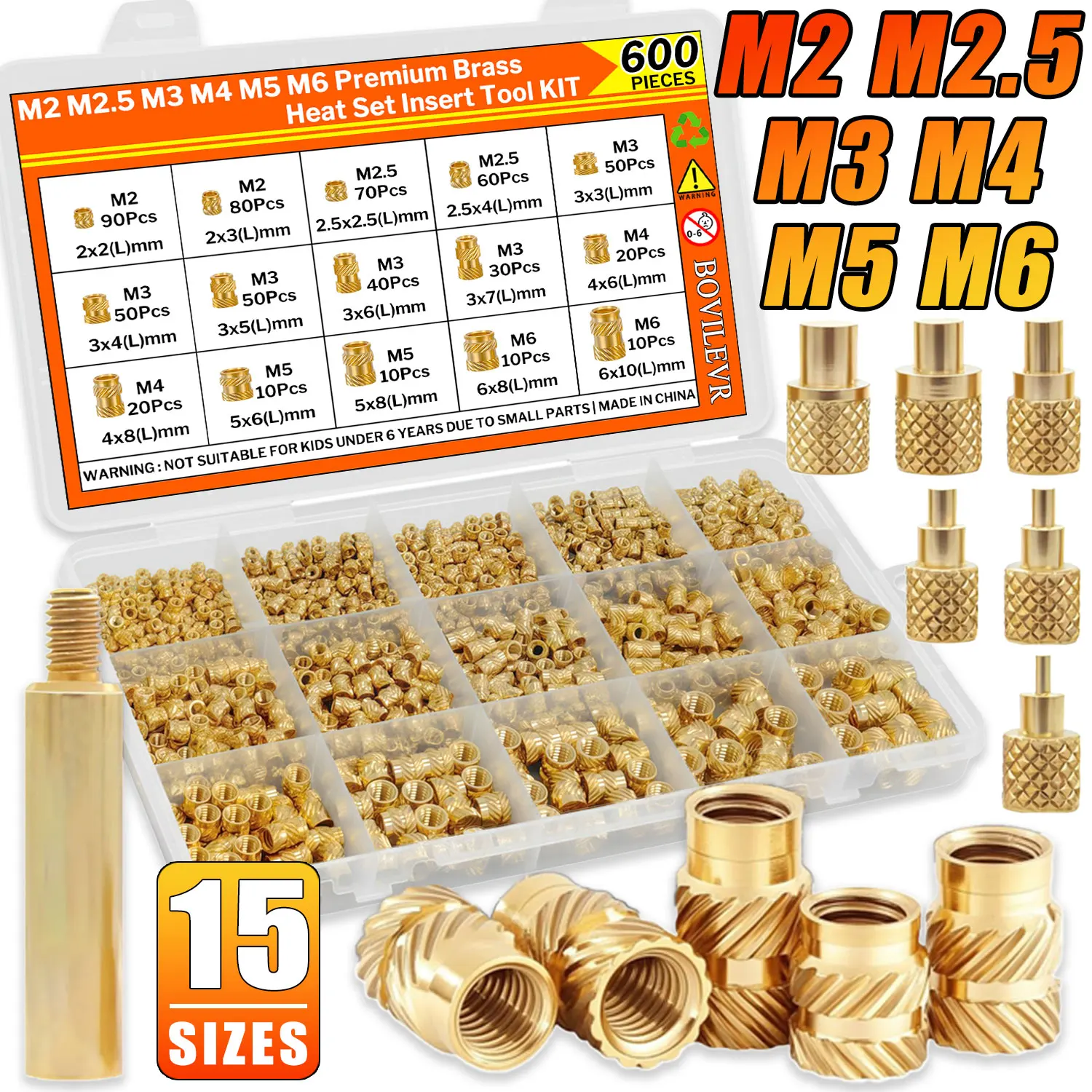 600Pcs M2-M6 Brass Threaded Inserts Knurled Nuts Kit with Heat Set Tool for 3D Printing Plastic Parts All-in-One Premium Set