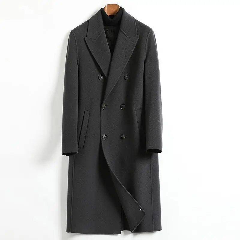 Business Gentleman Casual Woolen Coat for Autumn and Winter Double-breasted Lapel Warm Coat for European and American Young Men