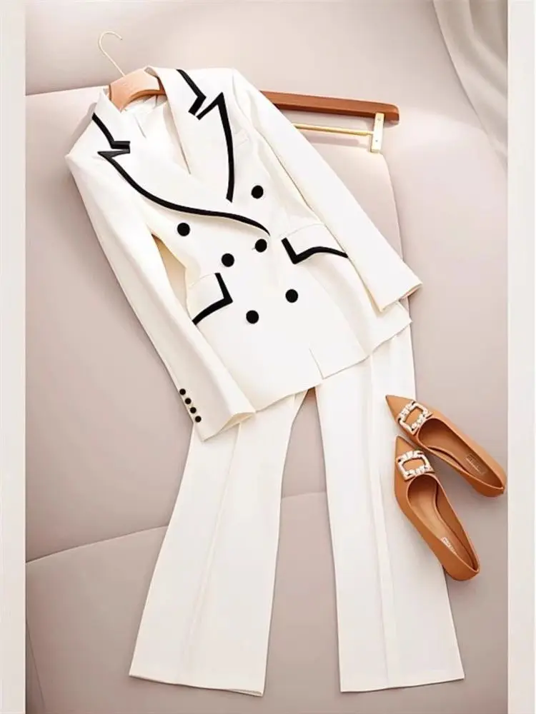 White Professional Women's Suit Jacket Two-Piece Set Early Autumn Small Fragrance Style Elegant High-End Feelings