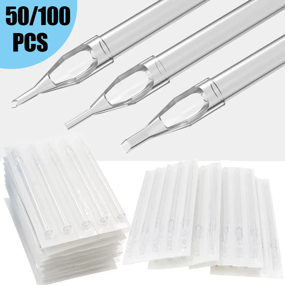 50Pcs Disposable Transparent Tattoo Nozzle Tips Clear Plastic Sterile Assorted Permanent Makeup Needle Tubes Supply RT/DT/FT/MFT