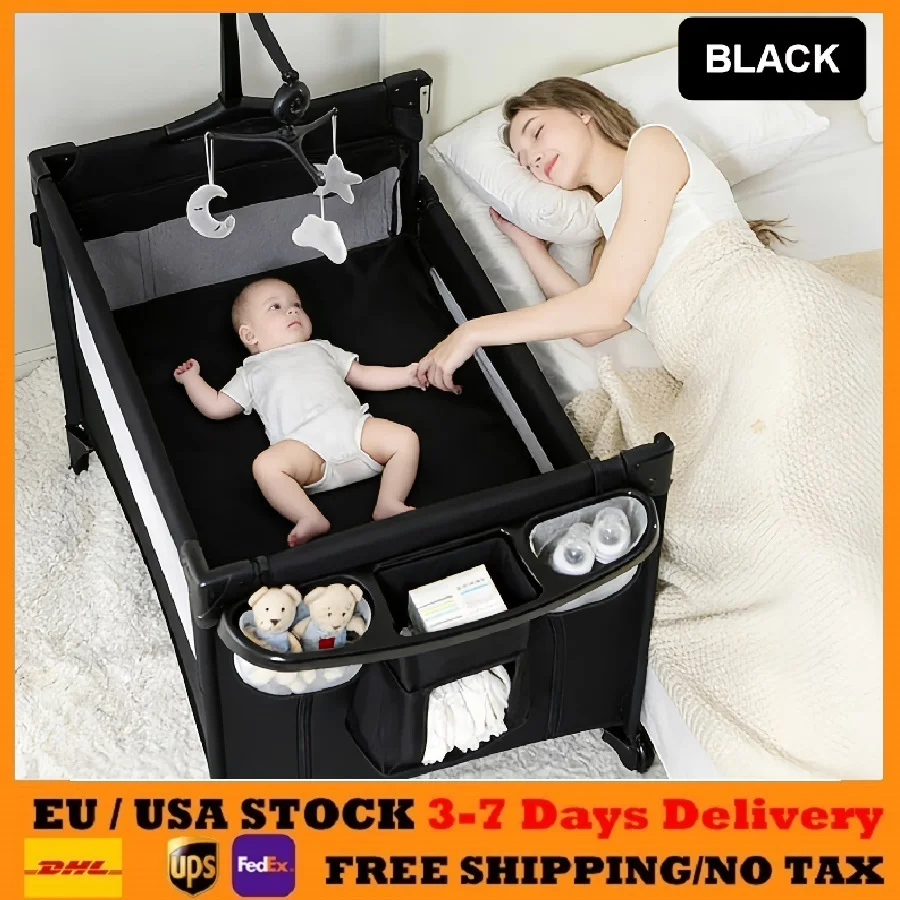 Baby Bed Bedside Baby Crib Folding Baby Sleeping Bed Fence for Baby Convertible Baby Crib with Changing Table