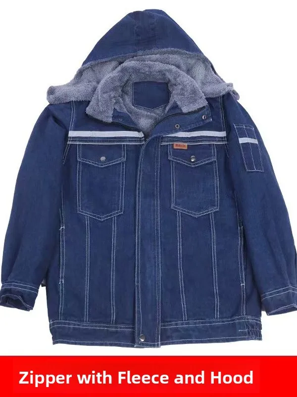 Thiened Fce Lined Denim Workwear Winter Jaet Protective Coat Resistant to Wear And Heat for Welding Workers Long Sv...