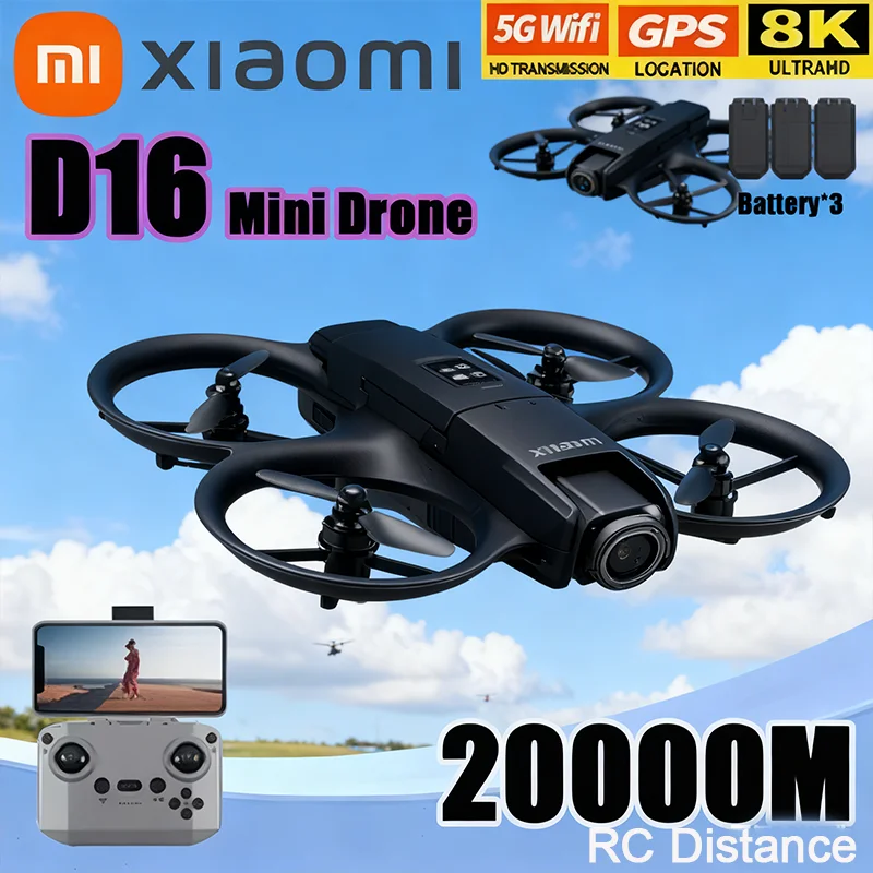 Xiaomi 8K HD Dual Camera D16 Max Drone Brushless Motor 5G Professional Aerial Optical Flow GPS Position Avoidance 20000m RC Kids