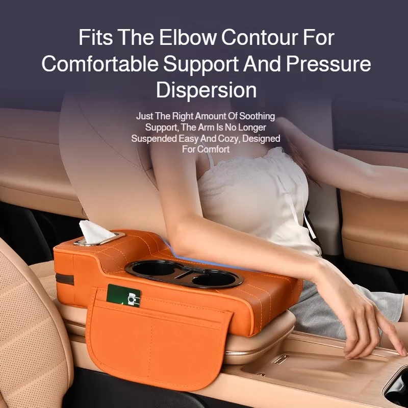 Car armrest box pad multifunctional leather protective cover double cup holder storage armrest box pad central heightening pad