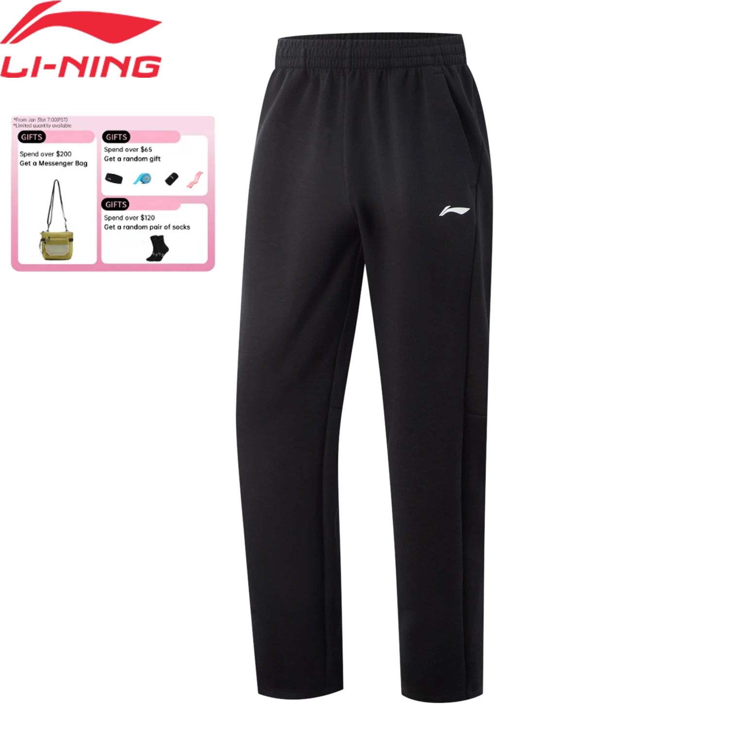 Li-Ning Men's Training Knitted Pants Comfortable Soft Adjustable Waist Black LiNing Fitness Sports Sweatpants AKLVA39