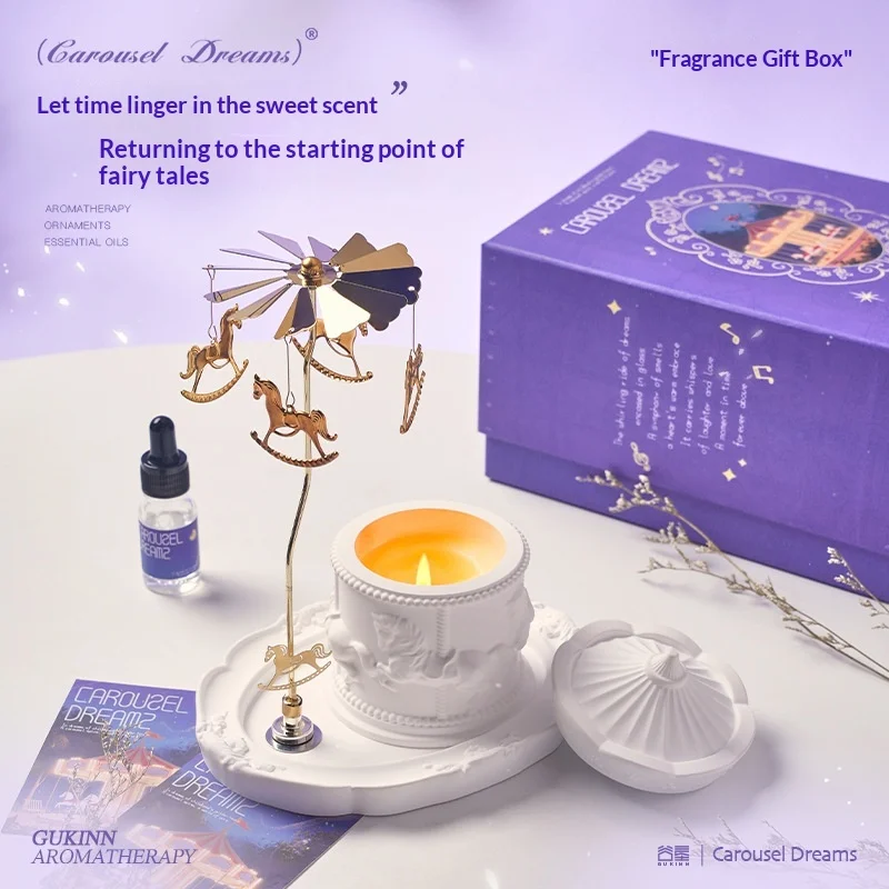Aromatherapy Candle Gift Set - Rotating Carousel Aromatherapy Candle, Essential Oils, Decorative Scented Soy Wax Candle, Suitable for Bedroom Decoration, High-End Birthday and Wedding Guest Gifts