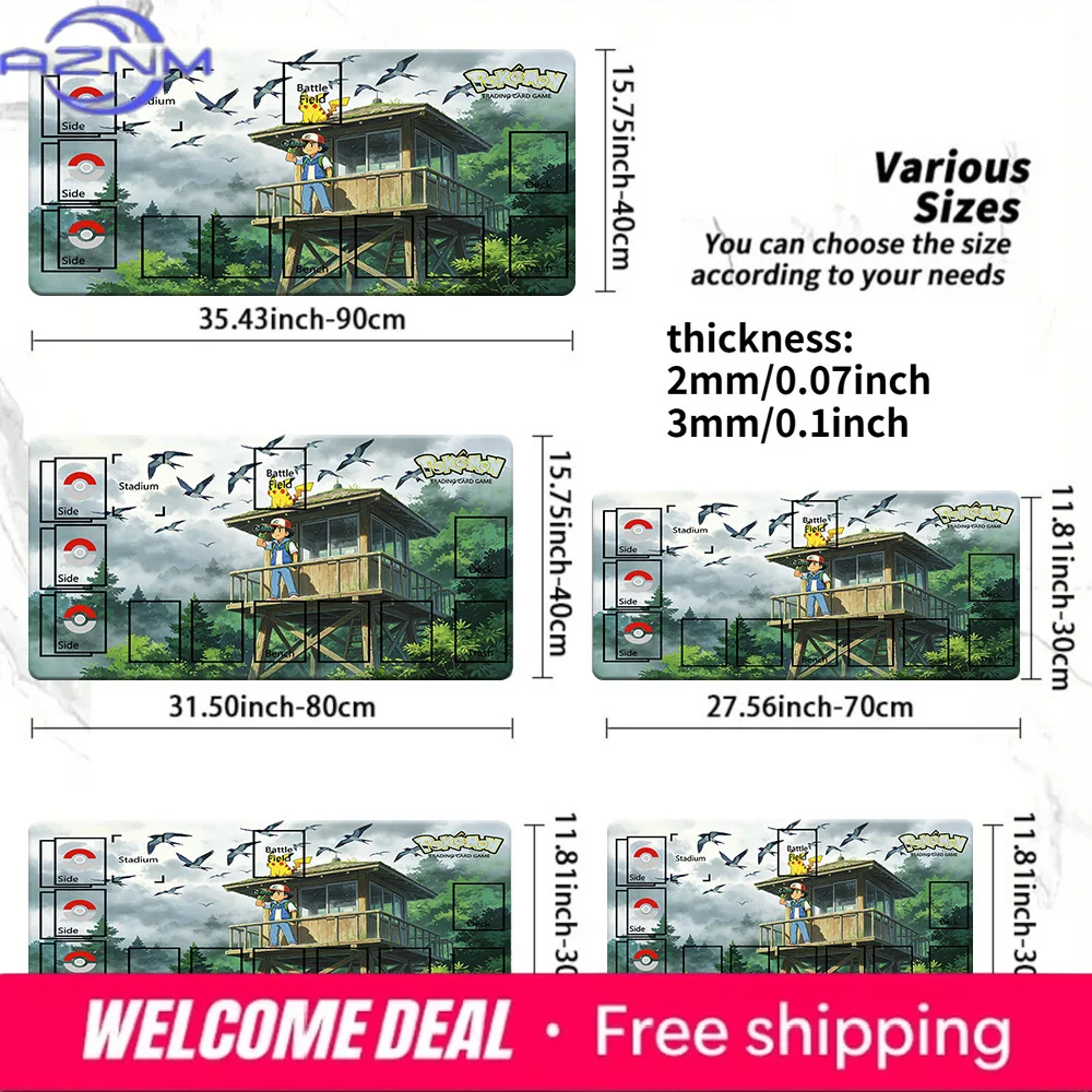 Pokemon Ash & Pikachu Watchtower Forest TCG Playmat Mouse Pad, Multiple Sizes 2mm/3mm Thickness