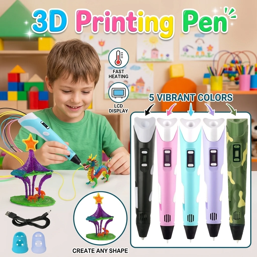 LED Screen 3D Printing Pen PLA Filament Magic Drawing Pen DIY Art Craft Creative Educational Gift for Kids Boys Girls
